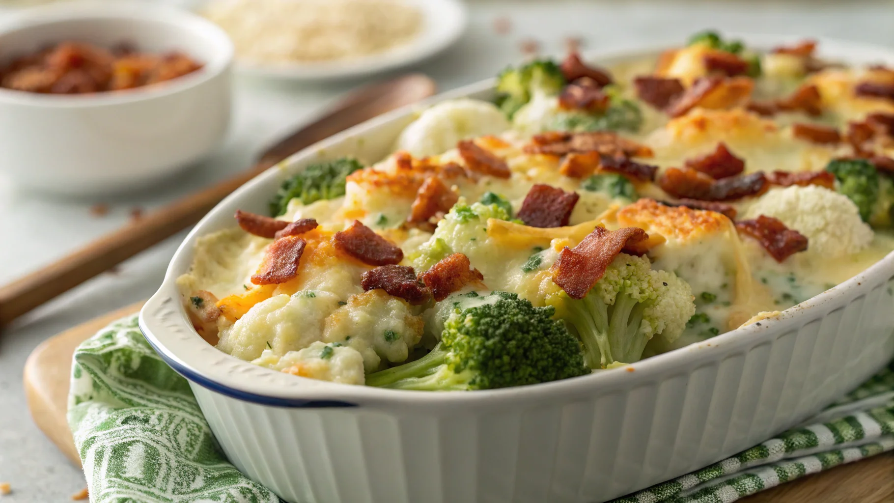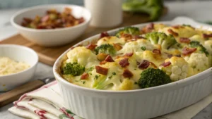The answer lies in one delicious bake: Craving a low-carb comfort meal? This Cauliflower Broccoli Casserole with Bacon and Cheese is creamy, cheesy, and keto-friendly.